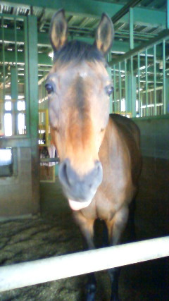 × [PR]上記の広告は3ヶ月以上新規記事投稿のないブログに表示されています。新しい記事を書く事で広告が消えます。 朝は酷かった雨も弱くなって、青空が出てきましたね。 馬場がぐしゃぐしゃなので早く晴れてほしいものです。 今日は獣医さんが午後にいらっしゃって全頭に注射を打ってもらいました。 いつも思いますが、神がかり的な手さばきで惚れ惚れします。 それと、厩舎に鼠が大量発生して被害を受けているので、鼠駆除をお願いした方々もいらっしゃいました。 …私が想像してたのは、防護服を着てスプレー的なものを背負ってシュワーッとやって鼠を消滅させるのかと思っていてどきどきしたんですが、駆除に来た方々は背広を着たりしてごく普通の人。 ↑私的イメージ画 何か面白いことをするわけでもなく、鼠捕り機を何個か説明して置いて行っただけでした。 残念! しかし馬の飼料は食べるし糞だらけにする鼠が少しでも減ってくれれば、本当に助かります。 折角なんで鼠捕りの写真か注射してるところの画像でもUPしようと思っていたんですが、すっかり忘れていたので前に撮ったボナンザアピールの写真でも…。 可愛らしい…。舌が出ているところがまた…。 今日が馬術部ブログ初書きだったんですが、何だか空気が読めてない気もしないでもないです。 そんなことは気にせず更新していきたいと思いますので宜しくお願いします。 じゃらば! 八巻 PR |